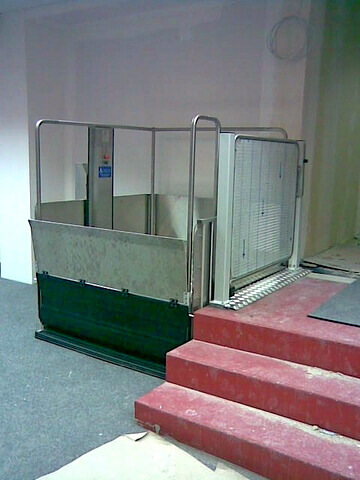![]() | ROLLSTUHLHEBEBÜHNE an einer Außentreppe im Eingangsbereich eines Hotels in Eberswalde WTL - HB 1000 |